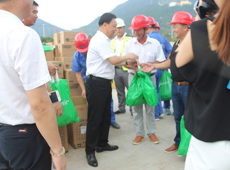 森馬集團(tuán)董事長(zhǎng)邱光和慰問(wèn)綠化工程施工人員