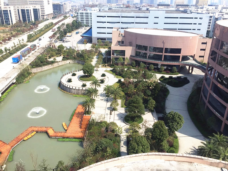整個(gè)園區(qū)約119718㎡,綠化用地較為平整,在辦公及研發(fā)中心西側(cè)有一片水體凸入園內(nèi);主體建筑風(fēng)格簡(jiǎn)潔大氣;建筑環(huán)境綠地空間余地較大,為營(yíng)造花園式園區(qū)提供了良好的客觀環(huán)境。